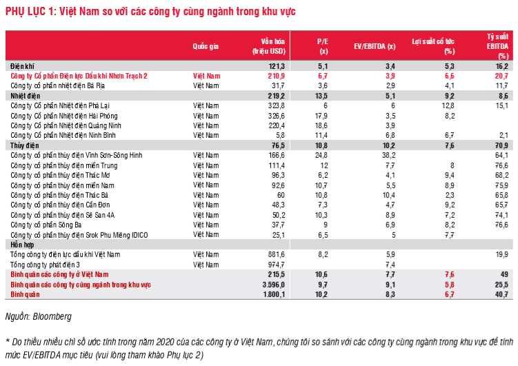 Hiện tại NT2 đang giao dịch ở mức EV/EBITDA 2020 là 4,0 lần (so với mức bình quân các công ty cùng ngành trong khu vực là 7,7 lần). (Vui lòng tham khảo chi tiết ở phụ lục 2)